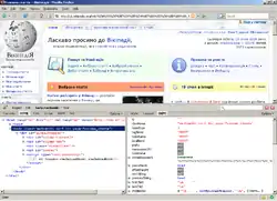 ![]() Firebug інспектує головну сторінку Вікіпедії | |