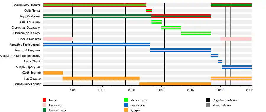 - Володимир Новіков — вокал, гітара (2001–2011, з 2018)
