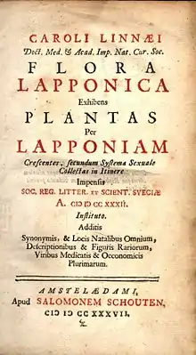 ![]() Титульний аркуш першого видання Flora Lapponica | |