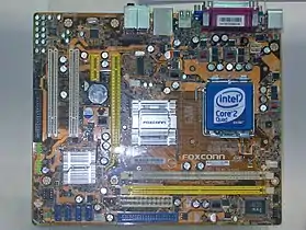 Foxconn робить комп'ютери, зокрема, радіатори та ПГД / ZIF гнізда, багато з яких використовуються іншими виробниками. Foxconn також випускає декілька різних материнських плат, при цьому більшість для Dell, HP і Sony. Починаючи з 2003 року компанія випустила у роздріб плати під власною маркою. У березні 2006 року, Foxconn починає виробництво відеокарт, починаючи з GeForce 7900GTX, але з намірами виробляти як nVidia, так і ATI карти.