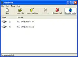 FreeOTFE може використовуватися в «портативному режимі», який дозволяє зберігати програму на USB флеш-накопичувачі або іншому портативному пристрої разом з зашифрованими даними. Це дозволяє монтувати розділи і отримувати доступ до зашифрованих даних через віртуальний диск без установки повної програми. Використання цього режиму вимагає установки драйвера для створення віртуального диска, і як наслідок необхідні права адміністратора.