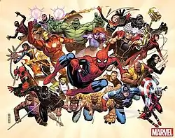 Тизер-постер показує Джессіку Джонс та Майлза Моралеза, персонажів створених Браяном Майклом Бендісом. Попри нещодавній переїзд Бендіса у DC Comics; постер підтверджує що Marvel продовжують публікувати цих персонажів.[1]