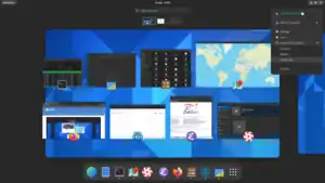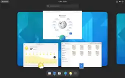 - Інтерфейс максимально спрощений, забезпечена можливість швидкого перегляду відкритих вікон, запущених зараз застосунків і найчастіше використовуваних програм. У лівій частині екрана представлена спливаюча панель Activities Overview, яка є воротами до завдань, що вирішуються користувачем. Наприклад, через Activities Overview можна разом подивитися вміст усіх вікон, переключитися на іншу задачу або запустити новий застосунок;