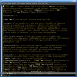 ![]() Робоче вікно GNU Emacs при редагуванні однієї із версій цієї статті, в режимі wikipedia-mode, кольорова тема color-theme-goldenrod, шрифт Terminus | |