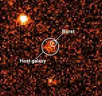 Післясвітіння розташовувалося на невеликій відстані від центру галактики, що свідчило про те, що сплеск стався в активному ядрі. Надалі було виміряно червоне зміщення галактики, яке виявилося рівним z = 0.695,[17] що відповідало відстані 8,1 × 109 св. років.[3] Повна енергія сплеску, виходячи з припущення про ізотропність випромінювання, становить 5,2 × 1044 Дж.[29]