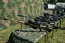- снайперські гвинтівки: Mauser 86 SR \ Mauser SP66, HK PSG1, PGM Mini-Hecate .338, Remington 700, M21, SR-25, Barrett M82, Sako TRG, Intervention