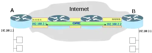 Як можна зрозуміти зі схеми, інкапсуляція (не обов'язково GRE) порушує ієрархію в моделі OSI. Це явище можна розглядати як роздільник між двома стеками протоколів, де один виступає «постачальником послуг» для іншого.