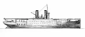 В центральній частині корабля був збудований ангар, над яким були надбудови та димові труби. Ворота ангару відкривались спереду та ззаду. Запуск літаків здійснювався за допомогою двох катапульт, підйом гідролітаків з поверхні води — за допомогою двох кранів.