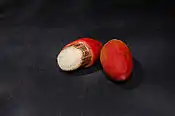 Плодоподібні стробіли складаються з маленького, але шкірястого покриття і великого горіхоподібного насіння 2–4 см завдовжки. Соковиті стробіли важать ≈ 5.5 грама, насіння — 3.8 грама. Стробіли зрілі, головним чином, з червня по вересень на північному сході Філіппін. Червоні стробіли їдять птахи, ссавці і рептилії.
