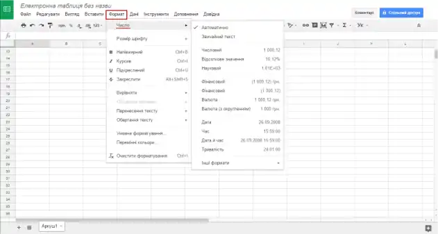 Формат google таблиці також піддається налаштувань. Вибравши будь-який рядок, осередок або стовпець з внесеним туди текстом або цифрами ви можете: