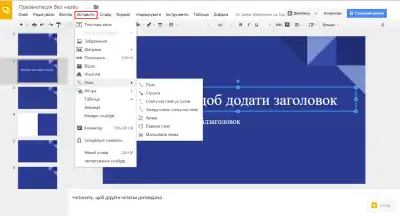 Даємо нашій онлайн-презентації в Google назву і за допомогою плюса вибираємо макет нашого майбутнього слайда: