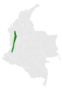 Ендемік Колумбії. Поширений в західних схилах Анд від Антіокії на півночі до департаменту Каука на півдні та західніше річки Каука.[1] Зустрічаються на висотах 2350-3650 м. Населяє вологі гірські ліси та узлісся.[2]