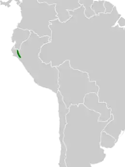 Ендемік Перу. Поширений на схилах Анд західніше річки Мараньйон (в регіонах Кахамарка, П'юра і Ламбаєке). Мешкає у вологих гірських лісах і узліссях на висотах 2850-3400 м.[2]