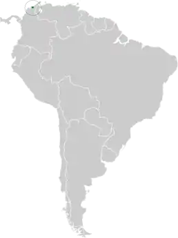 Є ендеміком гір Сьєрра-Невада-де-Санта-Марта на півночі Колумбії в департаментах Магдалена, Ла-Гуахіра та Сесар. Зустрічається на висотах 2200—2900 м. Населяє вологі гірські ліси та узлісся.[1][2]