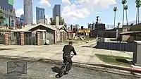 Відкритий світ був змодельований за прикладом Південної Каліфорнії та Лос-Анджелесу.[15] Основні члени команди виробництва ігрового світу виїжджали у регони для дослідження і робили фото та відео зйомку.[13] Проекція Google Map була використана для того щоб розробити дороги Лос-Анджелесу.[16] Щоб відобразити демографію Лос-Анджелесу розробники вивчали дані перепису населення та дивились документальні фільми про місто. Команда відзначала що створення відкритого світ було найбільш вимогливими аспектом виробництва гри з технічної точки зору.[10]