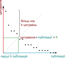 h-індекс науковця дорівнює h якщо він є автором h публікацій, кожна з яких була процитована щонайменше h разів.