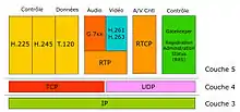 - H.225.0: Протоколи сигналізації та пакетування мультимедійного потоку (використовується підмножина протоколу сигналізації Q.931).