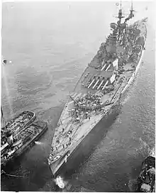 | Вересень 1944 — квітень 1945 | Ліверпуль | Встановлені 2 х 4 зенітні установки «Бофорс», 2 х 8 та 6 х 4 зенітних установок «Пом-пом», 15 зенітних гармат «Ерлікон» та 6 × 2 зенітних установок «Ерлікон». Демонтований радар виявлення надводних цілей Type 273; радар раннього попередження про повітряний напад Type 281 замінений на Type 281B, радар керування вогнем гармат головного калібру Type 284 замінений на два Type 274; встановлені радар для пошуку надводних цілей Type 277, радар керування вогнем зенітної артилерії Type 282 та радар для уточнення координат морських та повітряних об'єктів Type 293[50]. Демонтоване авіаційне обладнання[39]. |
