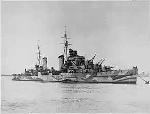| Зенітне озброєння | 1941: 3 × 40-мм автоматичних зенітних гармати QF 2 Mark II 8 (2 × 4) × 12,7-мм зенітних кулеметів Vickers .50 1943-1944: 8 × 40-мм зенітних гармат QF 2 Mark II 3 × 20-мм автоматичні зенітні гармати «Ерлікон» 1944-1945: 3 × 40-мм автоматичних зенітних гармат QF 2 Mark II 8 (2 × 4) × 12,7-мм зенітних кулеметів Vickers .50 | |