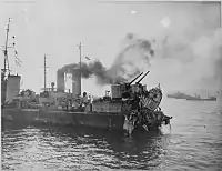 | Зенітне озброєння | 1 × 102-мм універсальна гармата QF 4 inch Mk V 4 (1 × 4) × 40-мм автоматичні зенітні гармати QF 2 Mark VIII 2 × 20-мм автоматичні зенітні гармати «Ерлікон» 12 (2 × 4; 2 × 2) × 12,7-мм зенітних кулеметів Vickers .50 | |