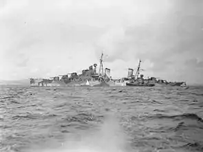 | Британський легкий крейсер «Найад» на якірній стоянці у Ферт-оф-Форт. Серпень 1940 | ||