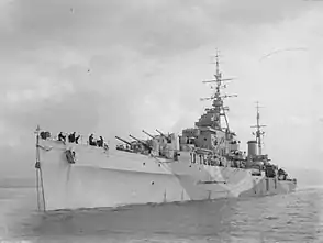 | Зенітне озброєння | 1943: 12 (3 × 4) × 40-мм зенітних гармат QF 2 Mark II 12 (6 × 2) × 20-мм автоматичних зенітних гармат «Ерлікон» 1945: 24 (8 × 2; 8 × 1) × 20-мм автоматичні зенітні гармати «Ерлікон» | |