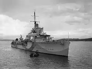 | Торпедно-мінне озброєння | 1919: 6 (2 × 3) × 533-мм торпедних апаратів 1943: 3 (1 × 3) × 533-мм торпедний апарат 2 бомбоскидувачи 20 глибинних бомб 1 протичовнова РСЗВ «Hedgehog» | |