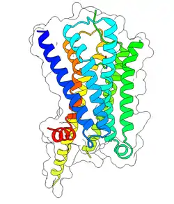 Кодований геном білок за функціями належить до рецепторів, g-білокспряжених рецепторів, білків внутрішньоклітинного сигналінгу. Задіяний у такому біологічному процесі як поліморфізм. Локалізований у клітинній мембрані, мембрані.