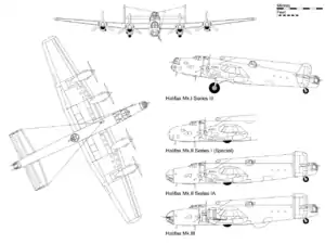 - Halifax B.II — нова версія літака з підвищеними ваговими характеристиками, а також запасами палива та боєприпасів.