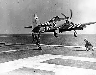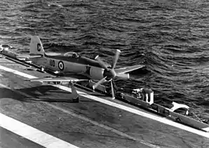 На ранньому періоду конфлікту літаки взлетіли 264 рази з борту авіаносця Theseus. Потім, у грудні 1950, ще 332 вильоти без бойових втрат.