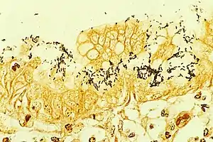 ![]() Helicobacter pylori мікрофотографія за допомогою СЕМ | ||||||||||||||