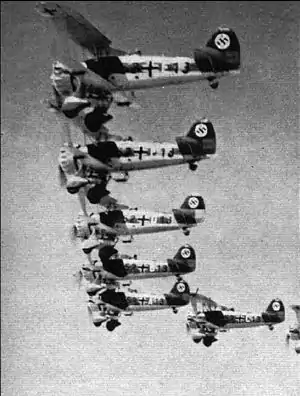 В серпні 1938 року Hs 123 стояли на озброєнні двох штурмових авіагруп, але до початку Другої світової їх було розформовано, і залишено тільки інструкторську авіагрупу II(Shcl.)/LG 2 з 40 Hs 123. Під час польської кампанії ця група підтримувала наступ 16-го моторизованого корпусу.