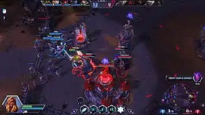 Гравці поділяються на протиборчі команди по 5 героїв: синю і червону. Своя завжди синя, ворожа — завжди червона. На старті всі герої з'являються на базі. Бази команд ідентичні і складаються з цитаделі (головної будівлі, знищення якої означає поразку), фортів (міцних оборонних споруд, здатних істотно затримати натиск противника), фонтанів (об'єктів, при використанні яких персонаж відновлює певну кількість здоров'я і магічної енергії мани), стін, воріт і веж. Форти і вежі мають обмежений боєзапас, який повільно відновлюється з плином часу. Деякі герої мають можливість прикликати МУЛа — робітника з гри StarCraft II, який ремонтує пошкоджені будівлі. Знищені будови відновити неможливо.