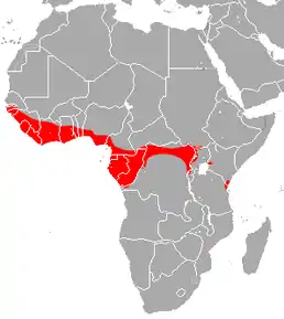 Країни поширення: Бенін, Камерун, Центральноафриканська Республіка, Конго, Демократична Республіка Конго, Кот-д'Івуар, Екваторіальна Гвінея, Габон, Гамбія, Гана, Гвінея, Гвінея-Бісау, Кенія, Ліберія, Нігерія, Руанда, Сенегал, Сьєрра-Леоне, Судан, Танзанія, Того, Уганда. Зустрічається від рівня моря, принаймні до 1000 м. Вважається лісовим видом, його можна знайти в лісо-савановій мозаїці в багатьох частинах ареалу, а також у вологих тропічних лісах. Вид лаштує сідала поодиниці, парами або невеликими групами до 12 особин у порожнинах чи дуплах стоячих дерев. Вони воліють порожнини якомога вище над землею, а іноді й поділять їх з представниками Pteromyini.