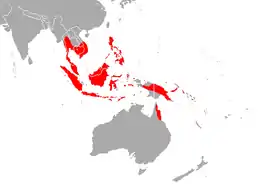 Країни поширення: Австралія, Камбоджа, Індія, Індонезія, Лаос, Малайзія, М'янма, Папуа Нова Гвінея, Філіппіни, Соломонові Острови, Таїланд, Східний Тимор, В'єтнам. Живе від рівня моря до 1300 м над рівнем моря. Лаштує сідала в малих і великих колоніях, в печерах разом з іншими видами Hipposideros. Також може спочивати в дуплах дерев, печерах, занедбаних шахтах, старих будівлях і штучних тунелях. Харчується жуками. Це низький літун, літає в галерейних лісах, над водою, а також в порушених лісах. Самиці народжують одне дитинча. Материнскі колонії можуть складатися з кількох тисяч тварин.