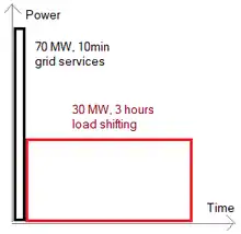 Найбільший акумулятор Tesla приєднаний до вітряної електростанції Hornsdale Wind Farm, що розташовується на північ від міста Аделаїда. Накопичуючи в собі електроенергію, система акумуляторів, що поділена на дві секції, здатна за потреби видавати потужність 70 МВт протягом 10 хвилин, а потім ще обслуговувати електромережу 3 години з потужністю 30 МВт.[4]