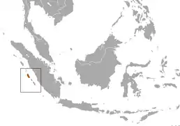 Цей вид є ендемічним для чотирьох Ментавайських островів (Сіберут, Сіпора, Північний Пагай і Південний Пагай) біля західного узбережжя острова Суматра, Індонезія.