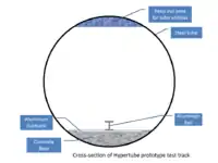 - аеродинамічна левітація (повітряна подушка) — переміщення відбувається над гладенькими алюмінієвими секціями, а контроль бічного руху капсули (вправо, вліво) здійснюється відносно монорейки або стінок труби через спеціальні коліщата чи повітряні вальниці;