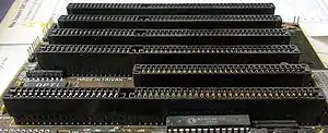 16-розрядну шину ISA інколи називають AT BUS. Її слот складається з двох частин, одна з яких у точності відповідає слоту 8-розрядної шини ISA, а на контакти другої частини виведені лінії для додаткових адрес введення/виведення, переривань та каналів DMA (Direct Memory Access). Тому короткі 8-розрядні карти можна встановити в 16-розрядний слот.