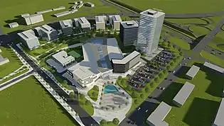 - один висотний бізнес-центр з корпусами на 11 та 22 поверхи, площею 32 тис м²