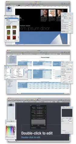 iWork — офісний пакет, набір застосунків, створених Apple Inc, що містить Текстовий процесор, Електронні таблиці, Підготовку презентацій і, фактично, Настільну видавничу систему.