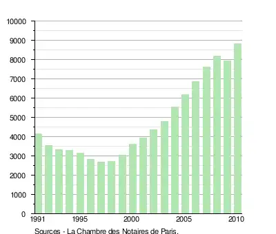 - Prix au m² des appartements anciens par arrondissement ((фр.)). Архів оригіналу за 19 липня 2013. Процитовано 31 березня 2011.