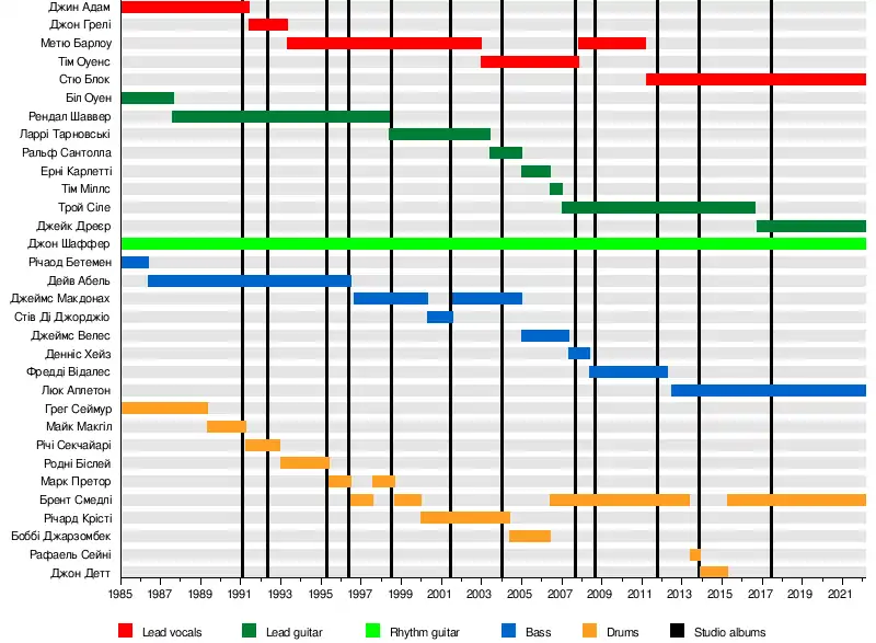 - Джон Шаффер (Jon Schaffer) – ритм-гітара, клавішні, бек-вокал (1985–дотепер)