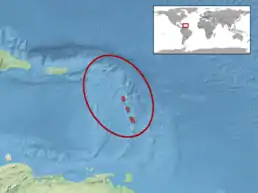 Мешкає на Малих Антильських островах Карибського моря (на островах Сен-Бартелемі, Ангілья, Сент-Мартен, Сінт-Естатіус, Антигуа, Гваделупа, Домініка і Мартиніка).