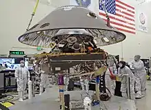 Спускний апарат виготовлений компанією Lockheed Martin, підрозділом Lockheed Martin Space Systems у 2010-х, запуск планувалось здійснити у березні 2016.[2][6] Проте, через несправність одного з інструментів запуск було відкладено до 5 травня 2018.