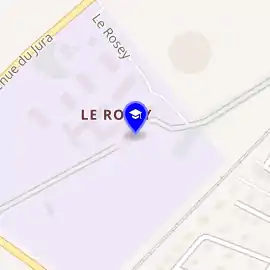 Institut Le Rosey має дві резиденції: головну та зимову. Головна розташована в Ролі, за 30 км від Женеви, на березі Женевського озера. Зимова резиденція школи розміщується в Гштааді, в кантоні Берн. Гштаад розташовується в німецькій частині Швейцарії за 80 км від Берна та за 150 км від Женеви.