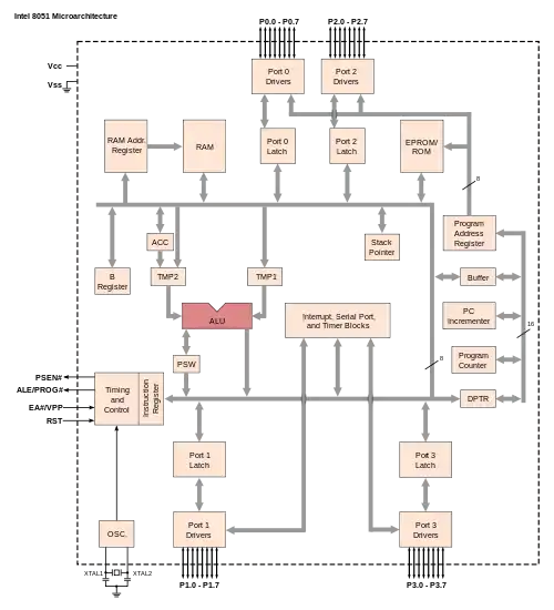 - MCS® 51 Microcontroller Family User's Manual, February 1994, Publication number 121517, Intel Corporation; PDF.