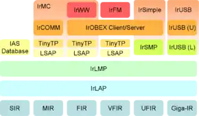 Додатковий протокол IrCOMM (англ. Infrared Communications Protocol) дає можливість інфрачервоним пристроям функціонувати як послідовний або паралельний порт. Він знаходиться у верхній частині шару IrLMP.