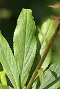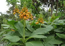 Цей вид — це кущ, який може виростати до 4 м у висоту[1]. Листки довжиною 10–40 см. Суцвіття щільні, прямі, до 40 см довжиною. Квіти трубчасті, апельсинового забарвлення з темним малюнком. Цвіте з червня по серпень[2].