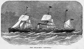 | 110 | 03.03.1870 / травень 1870 | Abyssinia BRT=3376 | «British & North American Royal Mail Steam Packet Company» (з 7 серпня 1878 року «Cunard Line») | пасажир | ![]() |